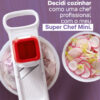 Com sua lâmina de corte bidirecional, esse mini fatiador garante um corte rápido e eficiente, economizando tempo na elaboração de suas receitas, sejam elas entradas, pratos principais ou sobremesas. Além disso, a segurança é uma prioridade: o produto acompanha um protetor para os dedos, que previne cortes acidentais ao manusear ingredientes.